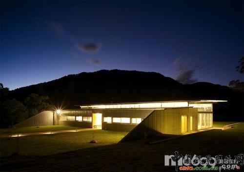 別墅坐落在澳大利亞新南威爾斯的獵人谷,這個現代農場住宅的設計受該地區濃厚的田園風格的啟發——站在草地上和山丘上可以俯瞰蜿蜒的河流和漂亮的山谷。據RichardCole公司介紹,“房子的主要設計理念是根據居住者的生活方式而設計,如在綠蔭下布置餐桌”。一個清涼的,全玻璃封閉的外部特征較有現代感,沿線伸展的屋檐可以遮擋一些下午熾烈的陽光。前衛的外觀與采用“天然”材料的內壁互補,采用混凝土、鍍鋅鋼、砂巖、再生木材和膠合板。Bluff農場住宅既是城鄉結合,又是奇特和真實的結合,獨特的風格使得這個傳統農場住宅看起來很現代。