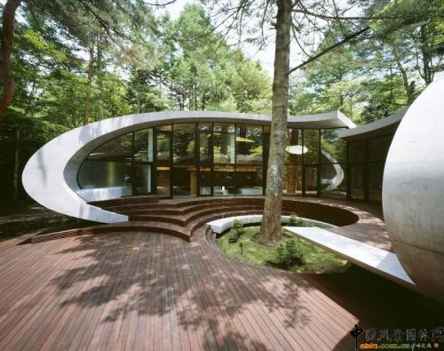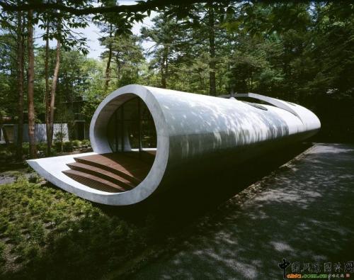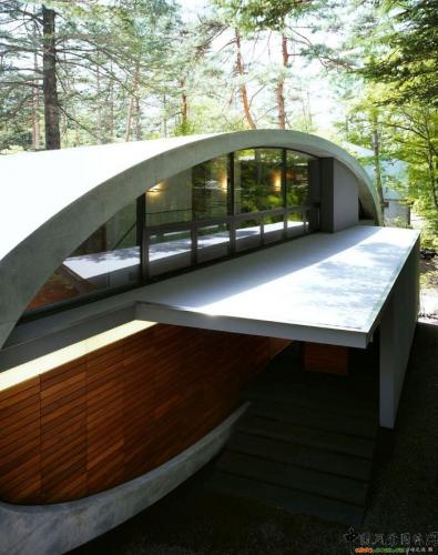 由建筑師kotaroide設計的“貝殼館”(ShellHouse),是一個建在輕井澤森林中的類似“殼”結構的建筑。項目坐落于日本長野縣。項目定位為一座度假別墅,同時要求具有抵擋當地夏季潮濕,冬季寒冷的功能。為實現這一目標,ide沒有選擇當地易腐而脆弱的傳統木結構,取而代之的是利用增強型混凝土去建造了兩個橢圓形截面的殼形結構。