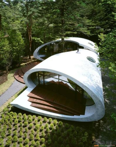 別墅簡潔的審美取向使它很好的融合到傳統的日本景觀中,在未來主義風格的建筑與其所處的自然環境之間達到了完美平衡。整個“貝殼館”(ShellHouse)工程耗時18個月。
