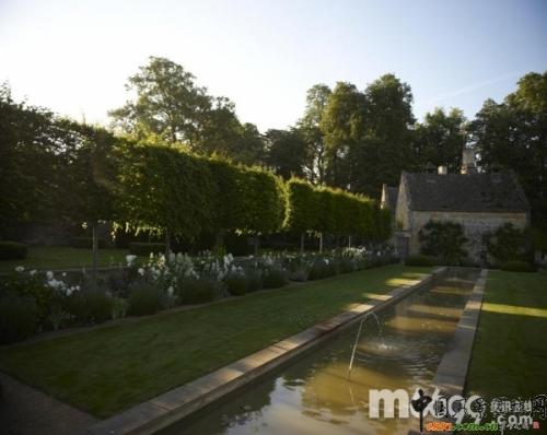 JinnyBlom將府邸附近的蔬菜園變成了一個(gè)階梯區(qū),這樣不僅能加強(qiáng)農(nóng)田的美景景色,也讓這里顯得與眾不同。花園中間有一個(gè)水景,能讓人留意到后面的老建筑。花園邊界處使用了紫杉籬笆。