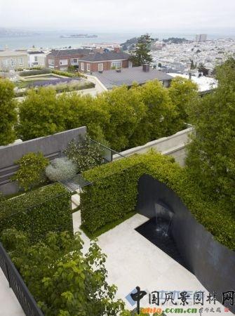 一個隱藏在城市之中,能看見舊金山灣風景的,態度謙遜的住宅庭院