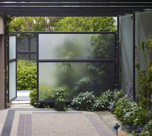 玻璃面板使空間分離,并創(chuàng)建了一個(gè)大膽的植物層次景觀
