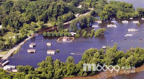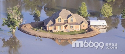 小島之家理念上認為住在海濱區總比屋子里浸滿水要好,面對密西西比河小支流泛濫的洪水,理智的居民都是這種感覺。于是他們就將住宅周圍筑起了高高的大壩,用來保護他們的家不受漲潮的危害。