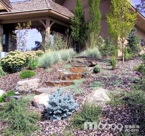 布朗山住宅位于斜坡場地上,項目設計的挑戰在于建造一個平臺,這就需要進行一些運土工作來調整地平面。平臺、臺階和苗圃為住宅增添了景色和舒適度。自然花崗巖和精心挑選的植物讓這座山坡住宅更有一番風味。