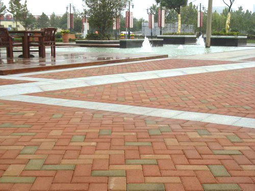面層鋪設:面層為透水磚,在鋪設時,應根據設計圖案鋪設透水磚,鋪設時應輕輕平放,用橡膠錘錘打穩定,但不得損傷磚的邊角,質量要求符合聯鎖型路面磚路面施工及驗收規程CJJ79-98規定。