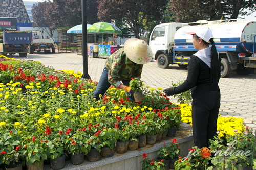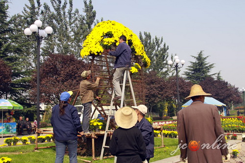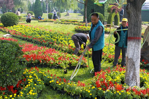 隨著“十一”國慶節的臨近,這幾天,晉城市園林綠化一線工作人員全部堅守在工作崗位上,正緊張地按圖紙進行搭建架子、擺放、移換晉城市公園里的盆花、擺花造型、澆水……工人們一個個汗流浹背,不辭辛勞,整日夜加班加點,抓緊美化梳妝晉城市各大公園廣場,用自己辛勤的汗水努力為市民打造和諧、靚麗的快樂家園。