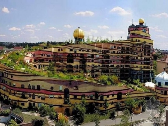 這個特色的建筑是由奧地利建筑師和畫家Friedensreich Hundertwasser(百水)設計,建筑的里面有105間公寓和一個餐廳,它最讓人嘆為觀止是不規則造型、如漩渦的夢幻色彩和模仿不同巖石地層的線條設計;如果你仔細看,還會發現每個窗戶都是還不一樣大小和造型,因為百水先生相信,只有這種不同款式、不同色彩的設計,才能讓窗戶在建筑中“跳起舞來”,才能營造出健康、有生命力的建筑。 此外,這個建筑的顏色代表著不同沉積巖的地層,表現出了建筑很少有的如此華麗。