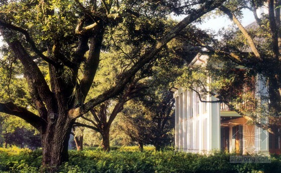 經(jīng)過綜合考查,與客戶多次協(xié)商,景觀事務(wù)所結(jié)合分析構(gòu)思了一個方案——別墅的位置與入口道路和進入的空間必須與小湖泊的特色相一致。這樣的安排讓新建筑物和花園儼然一體,花園里種有豐富的植物,包括橡樹和火炬松。景觀設(shè)計事務(wù)所認為規(guī)劃必須涉及景觀(包括植物、花園構(gòu)造和其它因素)、建筑特色和住宅規(guī)模,這樣才能相互融合,相映生輝。