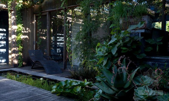 位于澳大利亞的一個長長的狹窄街區的工人木屋,如今被改為了一個現代的起居空間,設計師Myles Broad將花園設為住宅的中心,住宅圍繞這個院落展開,一個鋼鐵做成的涼亭橫跨整個院落,并將兒童空間和家長空間隔開。其他的室外空間被一塊一塊的植被點綴,這為室內和室外都帶來了開闊的空間感。