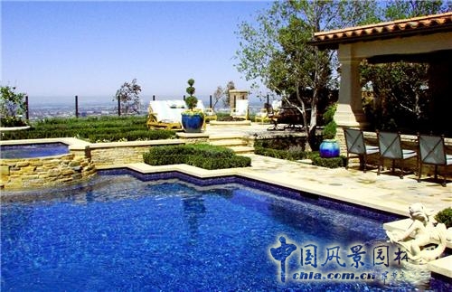 游泳池5/8部分采用價值10萬美元的藍色馬賽克裝飾