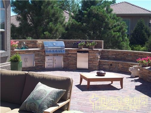 灶臺采用不銹鋼烤架和瓷質臺面,水池、水龍頭及櫥柜門均使用不銹鋼材料,而且灶臺緊鄰壁爐,這樣可以在烹飪的同時,招待旁邊休息的客人。