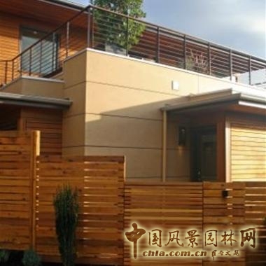 庭院杉柏木墻,下面采用山坡上的石頭堅(jiān)固
