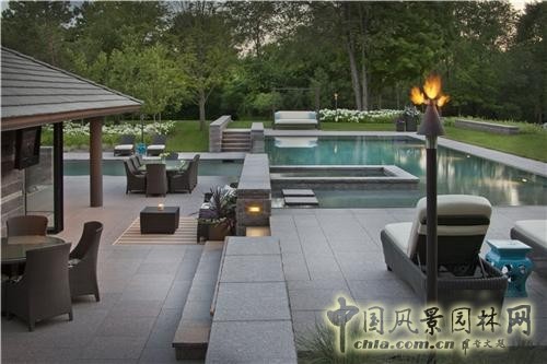庭院位于美國密歇根州庭院,是通過充分改造原有游泳池結構改造成的庭院。這個高檔游泳池最終的設計包括:無傳統邊界式游泳池、噴涌的礦泉、室外火爐、帶有整套烹飪設備的廚房、游泳滑道、點火器等。同時在周圍還有2個可以移動的籃球框。極大地豐富了庭院景觀和戶主的生活環境。
