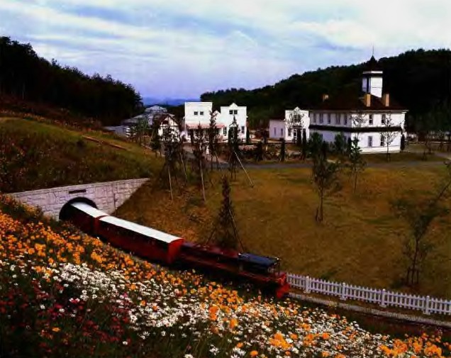 整個規(guī)劃時期(1985年—1990年)正值日本全土盛行觀光休閑地和主題公園的設(shè)計時期。人口上足一萬人的修善寺鎮(zhèn)投資23億,用了近5年的時間完成了這項工程。園內(nèi)設(shè)置了2個小時左右的游覽路線,以街區(qū)為主題引導(dǎo)人們參觀。從山脊到山谷口處為英式和加拿大風格的街區(qū)、一列蒸氣小火車的鐵軌貫穿街區(qū)。