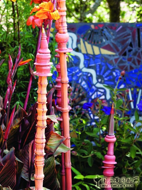 籬笆邊上的大鏡子有種通向另一個花園的假象