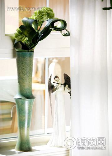 8.巴西鐵寬大的葉片不僅卷出了圓潤的線條,還塑造出彈性的空間效果,竹節(jié)般的娉婷花器與之渾然天成,就是一旁隱約的天使也為之傾倒。