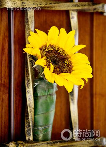 9單枝的葵花效果一點也不差,當(dāng)然,這更要歸功于包裹著它的巴西鐵花器。這是非常典型的“紅花還需綠葉配”,雖然直白,但是真理。