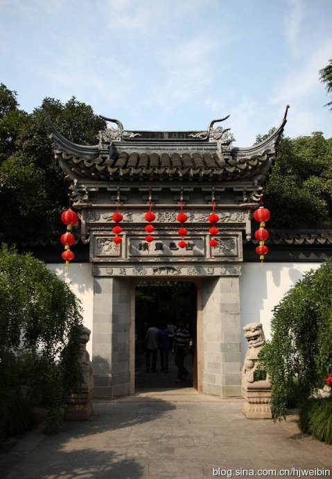 一進(jìn)曲水園,仰見儀門古典磚雕,儀門正面上鐫“古邑靈跡”,背面雕著“一文園址”。院內(nèi)梅樹古松,讓人心醉神迷。進(jìn)內(nèi)是九曲長廊回環(huán),廓外百花爭艷,宜于閑步神思。
