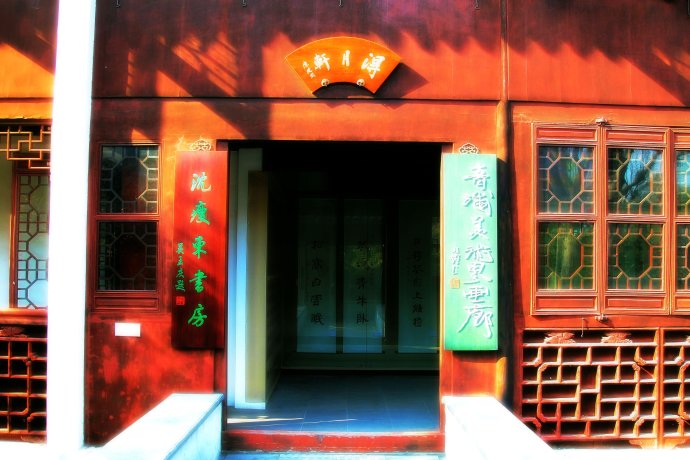 從“凝和堂”后向西是“涌翠亭”,過一小橋,便來到了“得月軒”,這是一排兩層樓的紅墻水軒,軒內是青浦美術界的畫廊,長年陳列著青浦的名人字畫。“涌翠亭”向北是長堤,堤上有座石拱橋,名為“喜雨橋”,在石拱橋中間的橋石上,兩條飛龍栩栩如生。