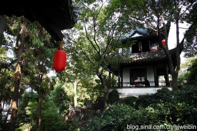 “小飛來”上的古樹,皆是當年壘石堆山時舊物,雖然經歷了百余年的風霜侵蝕,卻反使它們盤根錯節(jié),樹身長滿虬結,交接的枝柯鋪展出層層綠蔭,給“小飛來”增添了無限生機和幽深的感覺,游人棲身山間,頓然忘卻了城市的喧囂,領略到了山林的清幽。在“小飛來”西側有一座造型新奇的“佛谷亭”,亭子為少見的三角形,小巧玲瓏,亭的柱子上有一副楹聯(lián):“網(wǎng)開叁面疏而密、石壘壹山假亦真”。游客小憩其中,俯視腳下的蜿蜒曲水潺潺而流,再看遠處的華堂美軒,便有置身于詩境的感覺。