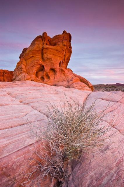 美國亞利桑那州的火焰谷州立公園,巖石的縫隙中生長著一株植物。這幅照片由攝影師范-菲特索姆在日落時分拍攝。