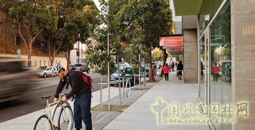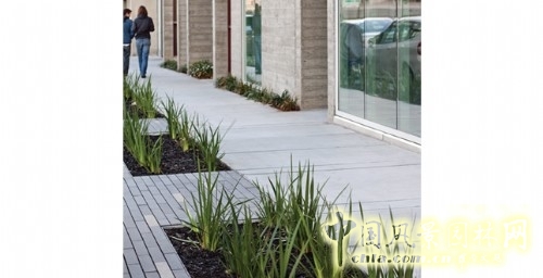 項(xiàng)目整體的設(shè)計(jì)都在考慮最大化將雨水滲透入砂石土壤中,這個(gè)與下水管道及雨水處理系統(tǒng)也是一個(gè)城市的關(guān)鍵要素。項(xiàng)目街景的雨水處理包括應(yīng)用透水性鋪裝和雨水園,在減小徑流、補(bǔ)充入地下水的前提下,再改進(jìn)城市公共領(lǐng)域建設(shè)。街道上的新樹都設(shè)有支架防護(hù),防備人為或機(jī)械對(duì)其的損傷。