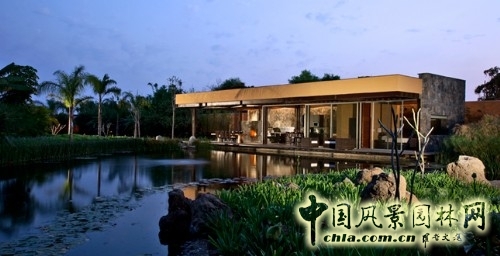 新會客廳和露臺設在新河道邊的一側,但風格完全不同于日式茶屋。舊游泳池一直擴充連接到新花園與河道。Malinalco居民區項目是花園、露臺、戶外小屋的轉型工程,為景觀的場景規劃與布局擺設提供了更豐富的經驗性建議。