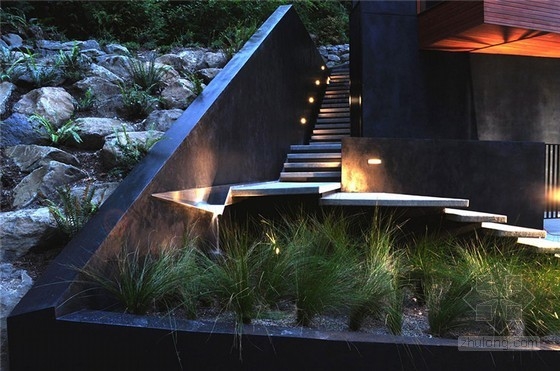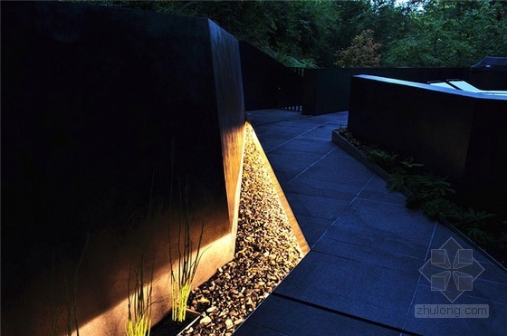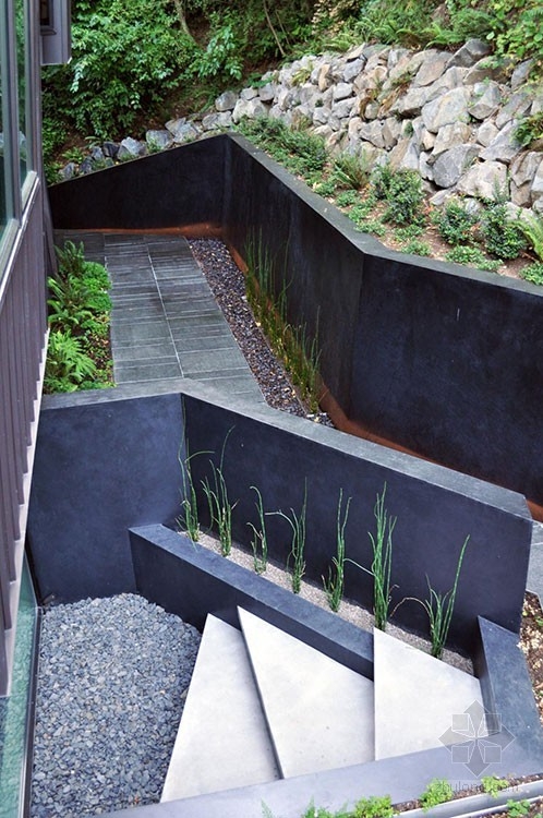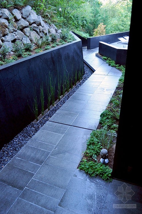 該住宅于2007年建立,它曾出現在有名的吸血鬼電影《暮光之城》中??蛻粝M诜孔又苓厔摻ㄒ恍┛臻g可以待客娛樂,設計團隊提出了一個綜合性的設計方法,重新思考如何能使景觀發揮更大的作用,并形成其獨特的風景。于是事務所對房子周邊的環境進行了改造,增添了巨石墻,還有樓梯、木甲板及碎石人行道。設計中使用傳統的材料,僅需最低限度的維護,就可以延續幾十年,設計團隊整合房子周邊現有植被等轉化為適于居住空間的景觀元素,相互連接在房子的外圍。通過創建墻壁和人行道形成一系列線形景觀將視線推拉到山坡上。整體設計形成一個個獨立又相互聯系的空間,花園中的碎石、石墻、植被將房子的邊緣巧妙地過渡到森林中去,成為一個有凝聚力的整體 。