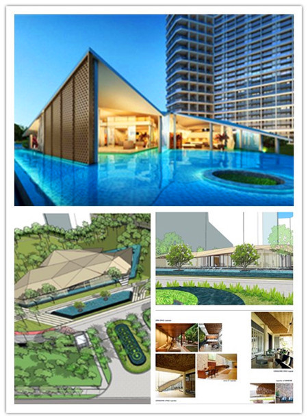 IFC海南國際度假村自南向北三進式中心庭院景觀:“藝文中心——泳池水上樂園——創意運動廣場”,動靜皆宜。