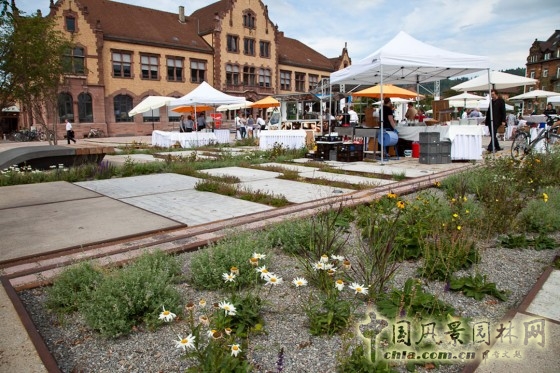 該項目位于德國弗萊堡市,由Dreiseitl工作室設計。之前,這里是歷史悠久的海關大廳,2009年修復成為現在的廣場。它完全擺脫了污水處理系統,成為水敏性城市設計的典范。
