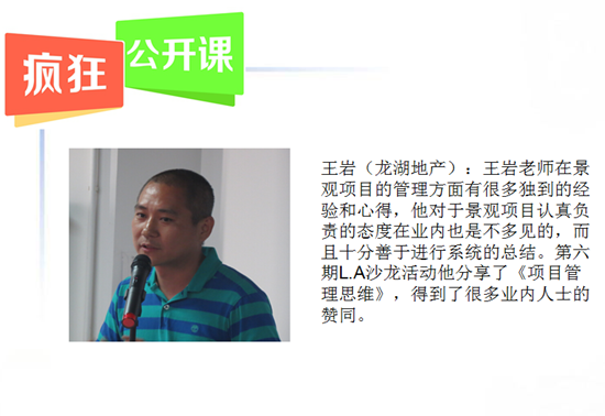 下場(chǎng)宣講環(huán)節(jié),來(lái)自龍湖地產(chǎn)的王巖老師為大家分享《景觀工程的全景管理》。王巖老師從項(xiàng)目管理思維、管理如何落地、管理的流程、景觀的價(jià)值等方面進(jìn)行系統(tǒng)講解,并結(jié)合以大興龍湖時(shí)代天街案例,詳細(xì)分享了獨(dú)具特色的《景觀工程的全景管理》實(shí)戰(zhàn)經(jīng)驗(yàn)。