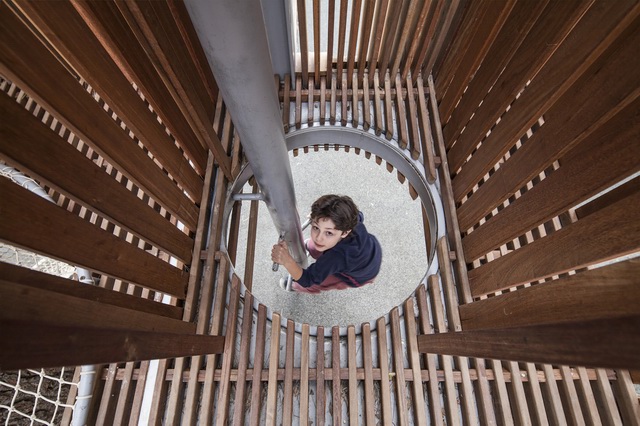 這是一個青年團教育機構有趣的入口景觀設施,該機構位于耶路撒冷以色列博物館。主要來訪者是一些青少年及兒童。主體建筑是由混凝土與石材建造的現代簡約風格建筑,有著干凈簡單的立面。這出小空間圍繞著一顆大樹展開,在不破壞大樹的前提下,營造出一個探索性小樹屋的空間,通過常常的木走到可以走進樹屋,也可以通過其下方的小爬梯爬入。