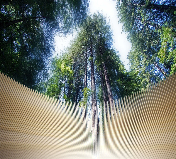 Cyclops 是景觀之上的一個獨立物體,又成為了景觀的框架。這一裝置由258個8米的長木和1×6的板構成,由中央不銹鋼纜懸掛的2個鋼環構成固定。