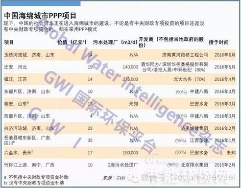 光大水務(wù)以及清華同方在4月和5月分別宣布進(jìn)軍海綿城市PPP市場(chǎng),北排集團(tuán)是國內(nèi)首個(gè)獲得PPP項(xiàng)目的企業(yè)。(見上表)