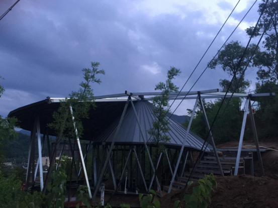 設(shè)計(jì)靈感來(lái)源于中國(guó)天壇與宋瓷天目盞,采用現(xiàn)代鋼結(jié)構(gòu)技術(shù)與中國(guó)木構(gòu)文化相結(jié)合, 用細(xì)部代替裝飾,體現(xiàn)精致美、材料美、線條美。
