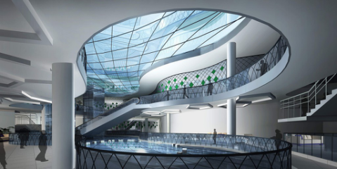 功能包括:運(yùn)動(dòng)員休息室、健身房、活動(dòng)室、內(nèi)部會(huì)議室(多功能)、小型羽毛球場(chǎng)等。輔館與主館間留有車(chē)行通道和聯(lián)接平臺(tái),既獨(dú)立分開(kāi)又聯(lián)系密切。輔館與主館間尋求一種和諧統(tǒng)一、鬧靜分離的關(guān)系。從而保證在沒(méi)有演出和大型賽事的情況下輔館可以獨(dú)立使用。