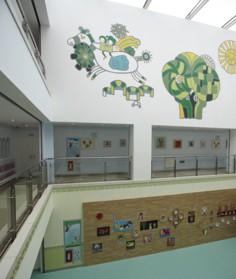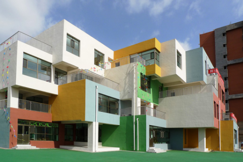 想送一個(gè)快樂(lè)的禮物,童年需要一個(gè)快樂(lè)天堂,試想一個(gè)孩童,到了適學(xué)的年紀(jì),離開(kāi)父母的翼護(hù),獨(dú)立于伙伴之中,恐懼與好奇可想而知。可他牽著父母的手,沿經(jīng)四路北上,順著長(zhǎng)長(zhǎng)的步道前行,繞過(guò)茂密蔥蘢的樹(shù)林,豁然,一個(gè)神奇的積木房子出現(xiàn)視野。那是怎樣一個(gè)驚喜!剎那間,喜悅與好奇難以抑制,不自覺(jué)放脫父母的牽手,奔向快樂(lè)與夢(mèng)想的家園,一路護(hù)衛(wèi)的是父母溫柔的目光與淡淡的釋然。
