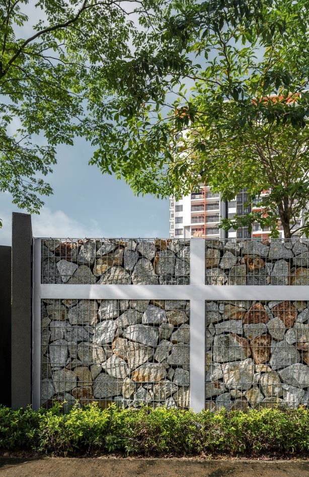作為主要的景觀特點,周圍的邊界墻以及泳池是利用了在建筑工地環保后的花崗巖制造的。這些材料很容易在本地獲取例如環保了的花崗巖,在建筑工地的地層就能找到。熱帶灌木被隨機的栽種在花園里,是為了調和周圍的叢林景觀,而混合性的栽種為了融合周圍的環境。