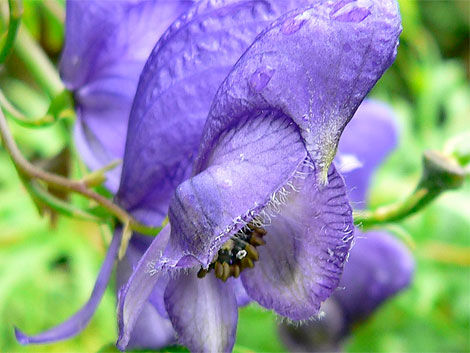 ![]() 如果不小心飲用曾食用白蛇根草的奶牛產下的牛奶,可能會引發致命的牛奶病。美國前總統林肯的母親南希·?怂咕褪撬烙谶@種疾病。白蛇根草的每一個部位都含有一種名為佩蘭毒素的有毒物質,這是一種不飽和醇,它能夠在牲畜死亡前使其肌肉發生震顫。斯圖爾特表示,“在19世紀,人們曾一直在想法設法查找牲畜毒死的原因”。不過,一直到20世紀初人們才了解事情的真相。當時美國農業部發現了這種毒草,并立即對外公布。現在,野外仍有許多白蛇根草在生長。但在農業產區,人們對這種有毒植物進行了嚴格控制,以避免牛因誤食。 5.舟形烏頭