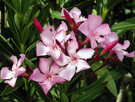 ![]() 木本曼陀羅生長于南美洲,它的花朵通常下垂,顏色鮮艷,呈喇叭狀,因此又被稱為“天使的號角”。它含有一系列強大的毒素,包括顛茄堿、天仙子胺以及車莨菪堿等。 2007年VBS電視臺曾播出一部名為《哥倫比亞惡魔的呼吸》的紀錄片。片中描述了哥倫比亞的罪犯如何從這種植物提取車莨菪堿并制成強效藥。即使受害者處于完全有意識狀態,這種強效藥也會讓人不知道在干什么。車莨菪堿能夠被人的皮膚和粘膜吸收,罪犯只需簡單地將含有車莨菪堿的粉末吹到受害人臉上即可。 9.夾竹桃