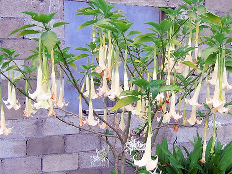 ![]() 維納斯捕蠅草的反應速度非常快,它能夠在半秒鐘之內完成夾閉過程。正是這種本領使得它們得以在動物王國生存下來。通常情況下,昆蟲只需要連續觸碰捕蠅草的兩根茸毛,這種植物就能立即它作出反應。但是截止目前,科學家們還無法對其關閉和捕獲獵物的具體機制解釋。 此前,美國植物學會曾提出一種解釋,認為是捕蠅草的細胞水壓突然變化,最終觸發了這種反應,但這一理論最終被拋棄。現在科學家提出,當捕蠅草的茸毛被外物觸碰時,其電位能發生變化,最終觸發大量細胞層面的反應。 8.木本曼陀羅