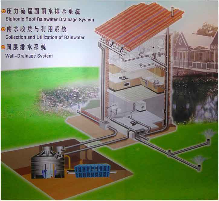 ②屋頂集雨系統:可為分散的住宅提供生活水源。城市別墅式住宅也可發展雨水收集系統,作為生活雜用水和生態環境用水。屋頂滲井系統可回補地下水。
